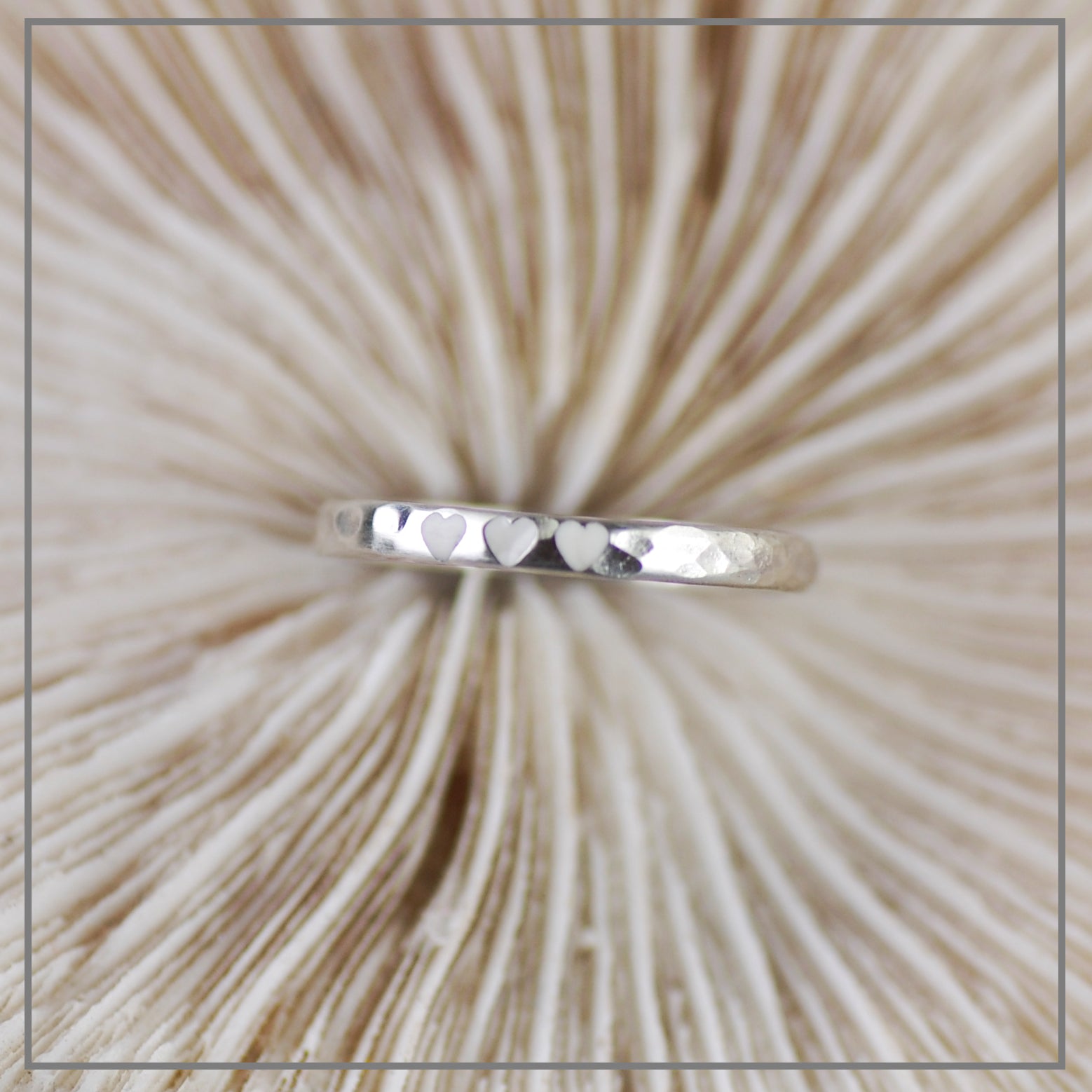 Een klein hartje van melk is verdiept in deze krachtige, zilveren ring.