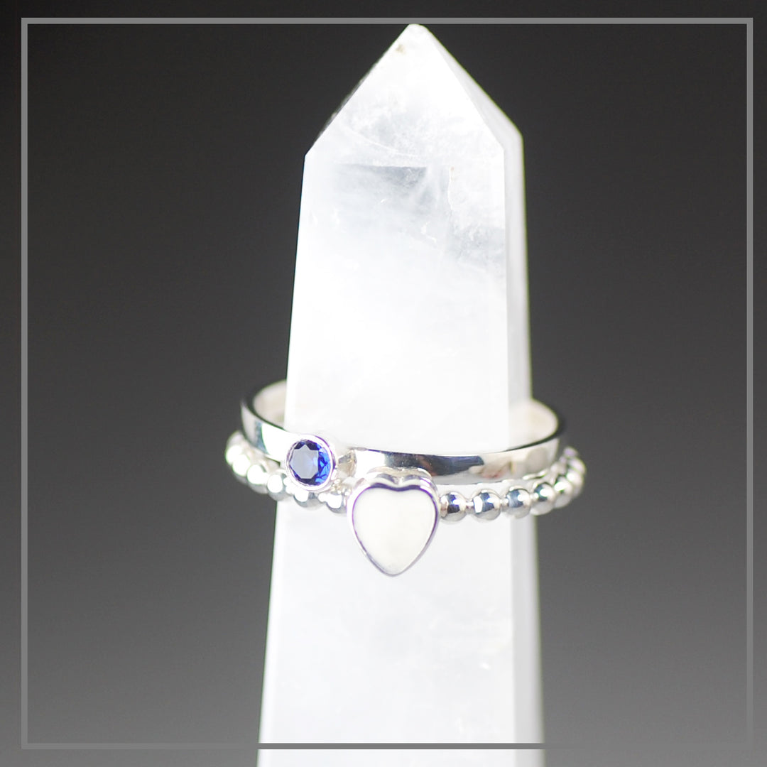 De moedermelkring van zilver wordt gecombineerd met een ring waar een geboortesteen op zit. Of andere prachtige symbolische aanschuifringen.