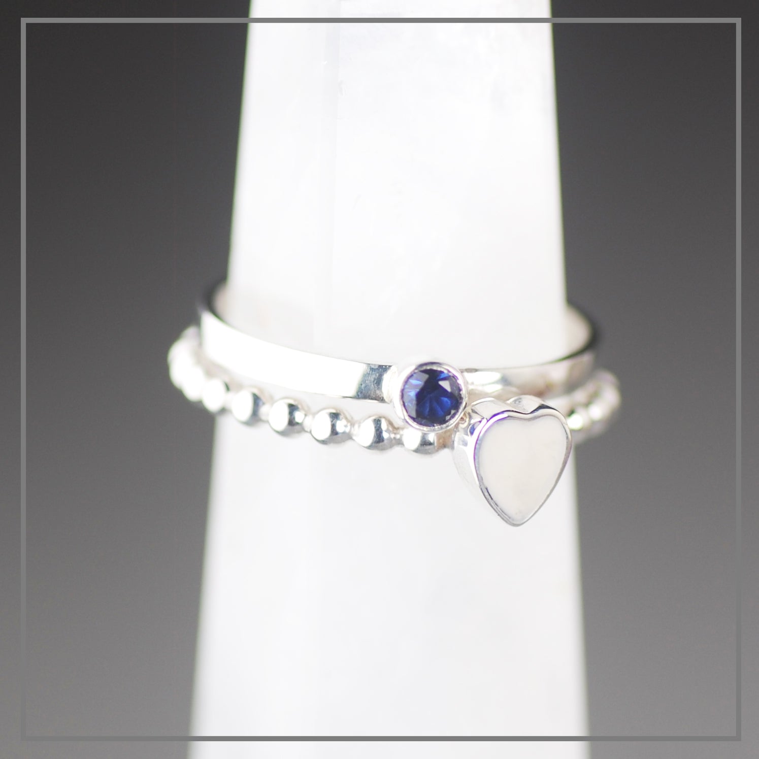 De geboortesteen van 3 mm kies je zelf. Het hartje wordt gevuld met jouw moedermelk en is 5 mm groot. De ringen zijn 2 mm dik.